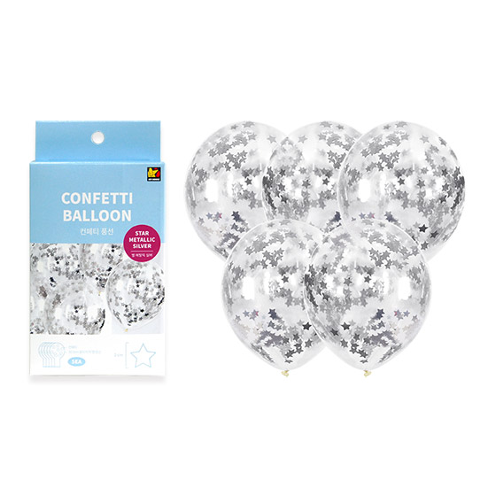 스타 실버 컨페티풍선 (5입)