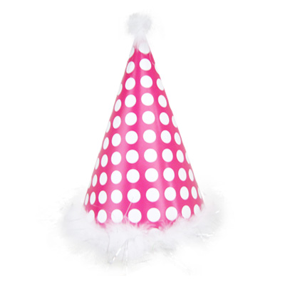 꼬깔도트깃털 핫핑크 꼬깔모자입니다.