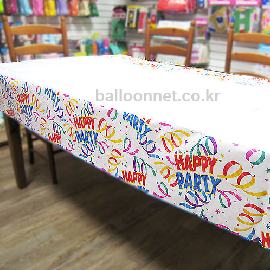 ■ 상품설명- 파티리본과 "HAPPY PARTY" 문구가 디자인된 종이 테이블커버입니다.- 테이블커버의 양쪽 끝은 디자인이 되어있으며, 가운데는 흰색으로 테이블 셋팅하기에 좋습니다.■ 상품사이즈- 210cmx110cm- 잔치때 집에서 많이 사용하는 4인용 교자상 2개를 덮을 수 있는 크기입니다.■ 상품재질- 종이