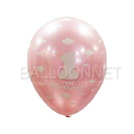 - 라운드 풍선에 1 Happy Birthday 글씨와 뭉게구름모양이 전체인쇄된 풍선입니다.