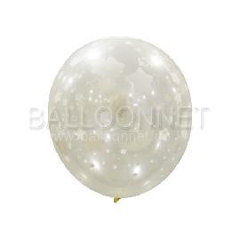 제품특징라운드클리어 풍선에 별과 달무늬가 화이트로 잉크로 인쇄.
