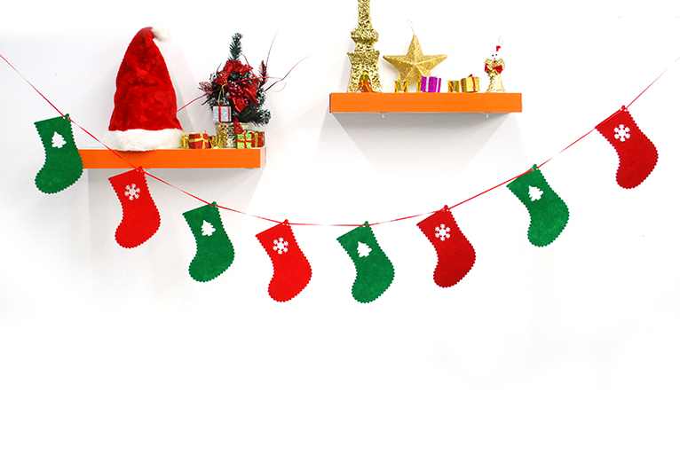 빨간색 산타양말과 녹색 산타양말를 교차해서 배치되어 있습니다.