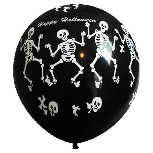 인쇄할로윈춤추는해골블랙 30Cm고무풍선